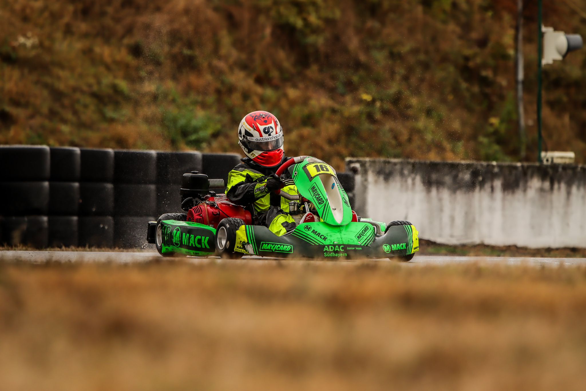 Bereits am Donnerstag nach der Schule ging es in das ca. 420km entfernte Liedolsheim auf die Kartbahn. Nach kurzer Akklimatisierung mit der Strecke konnte ich am Freitag zusammen mit meinen ADAC-Team ein gutes Paket für das Rennen erarbeiten. Während am Freitag beim Training die Sonne schien und es knapp 28 Grad hatte, war es am Samstag beim Qualifying eisig kalt und es regnete in Strömen.