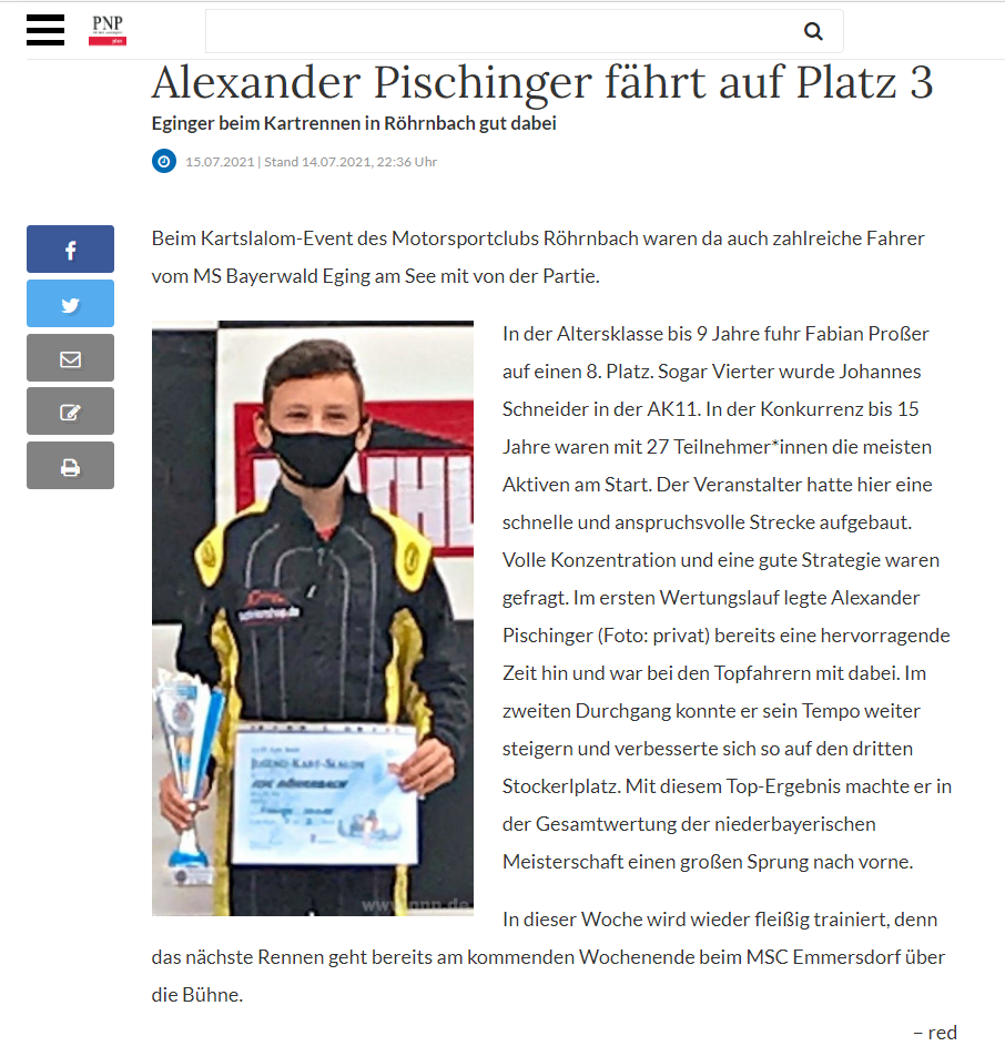 Die Passauer Neue Presse berichtet über den Rennerfolg am 11.07.2021