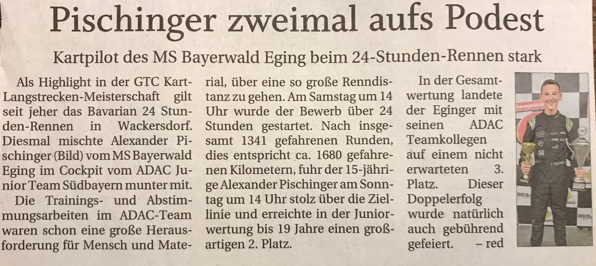 Die Passauer Neue Presse berichtet über den 2. Platz in der Juniorwertung & 3. Platz in der GTC Trophy beim 24h GTC Rennen am 10.07.2022 in Wackersdorf (Bayern)