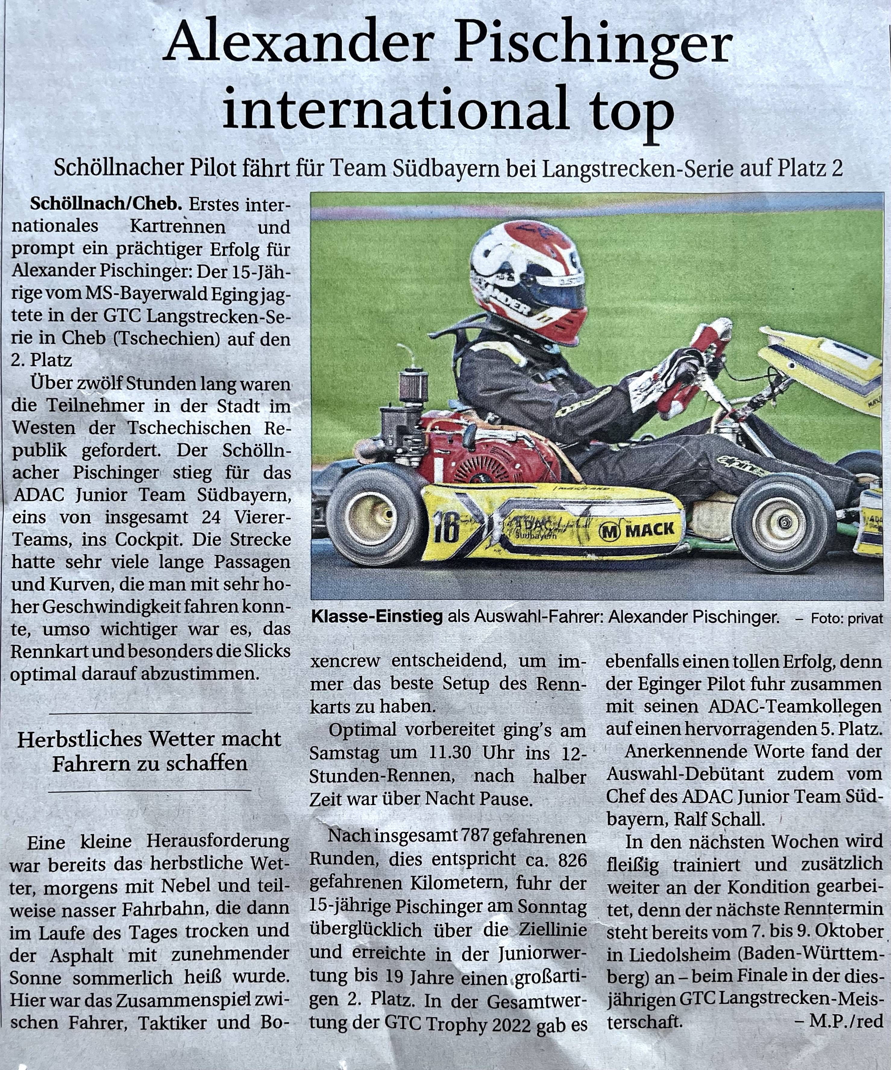 Die Passauer Neue Presse berichtet über den 1. internationalen Erfolg mit dem 2. Platz in der Juniorwertung am 04.09.2022 in Cheb (Tschechien)